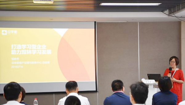 Yin Yan, strategic executive director of Shuanglin Education and director of human resources center, first introduced the overall situation of the online learning platform project of Shuanglin, and pointed out that the online learning platform will gradually form a network of knowledge-based training, making every employee a contributor of knowledge and a beneficiary of the era of knowledge sharing. At the same time, she emphasized the cooperation of enterprise university, human resource department and business department, and the discussion with each other for the establishment of learning organization.